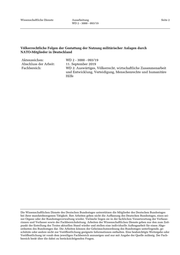 Wissenschaftliche Dienste Ausarbeitung Seite 2 WD 2 - 3000 - 093/19 Völkerrechtliche Folgen der Gestattung der Nutzung militärischer Anlagen durch NATO-Mitglieder in Deutschland Aktenzeichen: WD 2 - 3000 - 093/19 Abschluss der Arbeit: 11. September 2019 Fachbereich: WD 2: Auswärtiges, Völkerrecht, wirtschaftliche Zusammenarbeit und Entwicklung, Verteidigung, Menschenrechte und humanitäre Hilfe Die Wissenschaftlichen Dienste des Deutschen Bundestages unterstützen die Mitglieder des Deutschen Bundestages bei ihrer mandatsbezogenen Tätigkeit. Ihre Arbeiten geben nicht die Auffassung des Deutschen Bundestages, eines sei- ner Organe oder der Bundestagsverwaltung wieder. Vielmehr liegen sie in der fachlichen Verantwortung der Verfasse- rinnen und Verfasser sowie der Fachbereichsleitung. Arbeiten der Wissenschaftlichen Dienste geben nur den zum Zeit- punkt der Erstellung des Textes aktuellen Stand wieder und stellen eine individuelle Auftragsarbeit für einen Abge- ordneten des Bundestages dar. Die Arbeiten können der Geheimschutzordnung des Bundestages unterliegende, ge- schützte oder andere nicht zur Veröffentlichung geeignete Informationen enthalten. Eine beabsichtigte Weitergabe oder Veröffentlichung ist vorab dem jeweiligen Fachbereich anzuzeigen und nur mit Angabe der Quelle zulässig. Der Fach- bereich berät über die dabei zu berücksichtigenden Fragen.