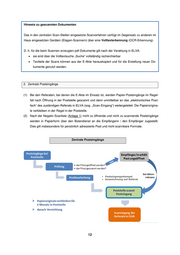 Hinweis zu gescannten Dokumenten Das in den zentralen Scan-Stellen eingesetzte Scanverfahren verfügt im Gegensatz zu anderen im Haus eingesetzten Geräten (Etagen-Scannern) über eine Volltexterkennung (OCR-Erkennung). D. h. für die beim Scannen erzeugten pdf-Dokumente gilt nach der Veraktung in ELVA: sie sind über die Volltextsuche „Suche“ vollständig recherchierbar Textteile der Scans können aus der E-Akte herauskopiert und für die Erstellung neuer Do- kumente genutzt werden. 2. Zentrale Posteingänge (1) Bei den Referaten, bei denen die E-Akte im Einsatz ist, werden Papier-Posteingänge im Regel- fall nach Öffnung in der Poststelle gescannt und dann unmittelbar an das „elektronisches Post- fach“ des zuständigen Referats in ELVA (sog. „Scan-Eingang“) weitergeleitet. Die Papierorigina- le verbleiben in der Regel in der Poststelle. (2) Nach der Negativ-Scanliste (Anlage 1) nicht zu öffnende und nicht zu scannende Posteingänge werden in Papierform über den Botendienst an die Empfängerin / den Empfänger zugestellt. Dies gilt insbesondere für persönlich adressierte Post und nicht scannbare Formate. Zentrale Posteingänge Posteingangsstempel Auszeichnung auf Referat 12