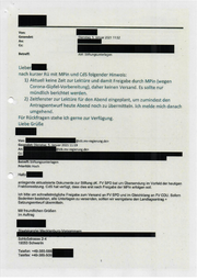Von: BEER Gesendet: Dienstag, 5. Januar 2021 11:52 Ce Betreff: AW: Stiftungsunterlagen Lieber nach kurzer Rü mit MPin und CdS folgender Hinweis: | 1) Aktuell keine Zeit zur Lektüre und damit Freigabe durch MPin (wegen Corona-Gipfel-Vorbereitung), daher keinen Versand. Es sollte nur mündlich berichtet werden. 2) Zeitfenster zur Lektüre für den Abend eingeplant, um zumindest den Antragsentwurf heute Abend noch zu übermitteln. Ich melde mich danach umgehend. Für Rückfragen stehe ich gerne zur Verfügung. Liebe Grüße ‚ BEE mu-regierung.de> Dein. Diensta Januar 2021 11:19 stk.mv-regierung.de> Betreff: Stiftungsunterlagen Priorität: Hoch Haıtc anliegende aktualisierte Dokumente zur Stiftung zK. FV SPD bat um Übersendung im Vorfeld der heutigen Fraktionssitzung. CdS hat verfügt, dass dies erst nach Freigabe der MPin erfolgen soll. Ich bitte um schnellstmögliche Freigabe zum Versand an FV SPD und im Gleichklang an FV CDU. Sofern Bedenken bestehen, alle Unterlagen zu versenden, sollten wir wenigstens den Landtagsantrag + Satzungsentwurf übermitteln. Mit freundlichen Grüßen Im Auftrag Schloßstrasse 2-4 19053 Schwerin Telefon: +49-385-588 Telefax: +49-385-509