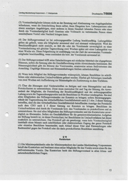 Landtag Mecklenburg-Vorpommern - 7. Wahlperiode Drucksache 7/5696 ee ee ee Zn 2 u Te N 88 Aufgaben des Stiftungsvorstandes (1) Der Stiftungsvorstand entscheidet in eigener Verantwortung und führt die laufenden Geschäfte der Stiftung. Er ist weisungsunabhängig. Er hat die Stellung eines gesetzlichen Vertreters und vertritt die Stiftung gerichtlich und außergerichtlich. Die Mitglieder des Stiftungsvorstandes sind einzelvertretungsberechtigt. Im Innenverhältnis vertritt der Vorsit- zende des Stiftungsvorstandes die Stiftung allein, für den Fall der Verhinderung der stellver- tretende Vorsitzende. Besteht der Stiftungsvorstand nur aus einer Person, bedürften Geschäfte zwischen dem Vorstandsmitglied und der Stiftung der vorherigen Zustimmung des Kurato- riums. (2) Die Geschäftsführung nach $ 6. .dieser Satzung ist neben dem Vorstand gerichtlich und außergerichtlich in Angelegenheiten der laufenden Geschäfte der Stiftung und der Leitung der Geschäftsstelle im Rahmen der Vorgaben des Vorstandes alleinvertretungsberechtigt, soweit die gemeinwohlorientierten Aufgaben der Stiftung berührt sind. Die Geschäftsführung hat die Rechtsstellung eines besonderen Vertreters nach $ 30 des Bürgerlichen Gesetzbuches (BGB). Die Sätze 1 und 2 dieses Absatzes gelten in den ersten zwei Jahren nach Gründung der Stiftung “nicht. Soweit der wirtschaftliche Geschäftsbetrieb nach $ 2 Absatz 2 dieser Satzung berührt ist, ist für diesen der CEO nach $ 5 dieser Satzung neben dem Vorstand gerichtlich und außer- gerichtlich alleinvertretungsberechtigt und hat dieser die Rechtsstellung eines besonderen Vertreters nach $ 30 des Bürgerlichen Gesetzbuches (BGB). (3) Der Stiftungsvorstand hat im Rahmen des Stiftungsgesetzes und dieser Stiftungssatzung den Willen des Stifters so wirksam wie möglich zu erfüllen. Er hat dabei für die dauernde und nach- haltige Erfüllung des Stiftungszwecks zu sorgen. Er leitet und verwaltet die: Stiftung und beschließt über ihre Angelegenheiten, soweit sich aus den Bestimmungen dieser Satzung nichts anderes ergibt. Ihm obliegen insbesondere: a) die Festlegung von Arbeitsschwerpunkten der Stiftung innerhalb des Stiftungszweckes und der Stiftungsziele nach $ 2, | b) die Festlegung von Grundsätzen für die Anlage, Verwaltung und Verwendung des Stiftungs- vermögens sowie für die Vergabe der Fördermittel der Stiftung, c) die Anlage, Verwaltung und Verwendung des Stiftungsvermögens, d) die Entscheidung über die Vergabe der Fördermittel der Stiftung, e) die Überwachung der zweckentsprechenden und wirtschaftlichen Verwendung der Stiftungsmittel einschließlich der Fördermittel, f) die Berufung und Abberufung der Geschäftsführerin/des Geschäftsführers für die gemein- wohlorientierten Aufgaben der Stiftung, g) die Entlastung der Geschäftsführung für die gemeinwohlorientierten Aufgaben der Stiftung, h) die Berufung und Abberufung der oder des CEO nach $ 5 dieser Satzung sowie dessen Ent- - lastung, i) der Abschluss, die Änderung,.die Aufhebung oder die Kündigung von Arbeits-, Dienst- und Werkverträgen, soweit dies durch den Stiftungsvorstand nicht auf die Geschäftsführung für die gemeinwohlorientierten Aufgaben der Stiftung übertragen wurde, J) die zeitgerechte Aufstellung von Wirtschafts- und Stellenplänen vor Abschluss des Geschäftsjahres soweit dies durch den Stiftungsvorstand nicht auf die Geschäftsführung für die gemeinwohlorientierten Aufgaben der Stiftung übertragen wurde, a