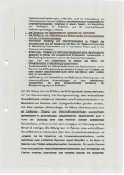 (2) 8) (4) (9) mieten und vermieten, Werkzeuge und Maschinen erwerben, übernehmen, verwalten, halten, zur Verfügung stellen und vermieten. Erträge der oder des wirtschaftgewerblichen Geschäftsbetriebes und möglicher Tochtergesellschaften dienen der Förderung der in den Abs. 1 und 2 genannten Ziele und Zwecke. $3 Stiftungsvermögen (1) Die Stiftung erfüllt ihre Aufgaben a) aus den Erträgen des Grundstockvermögens, b) aus den Erträgen der angestrebten wirtschaftlichen Betätigung, c) aus sonstigen Zuwendungen (Zustiftungen und Spenden), soweit sie von dem Zuwendenden nicht ausdrücklich zur Aufstockung des Grundstockvermögens bestimmt sind. Zu diesen Aufgaben gehören auch die Verwaltungskosten der Stiftung einschließlich ‘der. der Stiftung entstehenden Aufwendungen zur Unterhaltung wirtschaftgewerblicher Geschäftsbetriebe. Bei Zustiftungen und Spenden, die ganz oder teilweise aus Sachwerten bestehen, kann der Stiftungsvorstand diese zum Zwecke der Vermögensumschichtung veräußern. Für den Veräußerungserlös gilt Abs. 1 lit. c). Die Stiftung kann Rücklagen bilden, soweit dies der Zweckverfolgung dienlich ist. Die Stiftung ist berechtigt, aus Vermögensumschichtungen oder aus einem wirtschaftlichen Geschäftsbetrieb erzielte Gewinne ganz oder teilweise für den Stiftungszweck zu verwenden, in eine Umschichtungsrücklage einzustellen oder dem Stiftungsvermögen zuzuführen. Ein Rechtsanspruch auf Gewährung von Leistungen durch die Stiftung besteht aufgrund dieser Satzung nicht. Ein solcher kann auch nicht durch regelmäßige oder wiederholte Leistungen begründet werden.