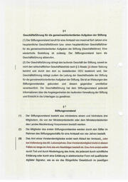 (1) (2) (3) 86 Geschäftsführung für die gemeinwohlorientierten Aufgaben der Stiftung (1) Der Stiftungsvorstand beruft für eine Amtszeit von maximal fünf Jahren eine hauptamtliche Geschäftsführerin bzw. einen hauptamtlichen Geschäftsführer für die. gemeinwohlorientierten Aufgaben der ‚Stiftung (Geschäftsführer). Eine wiederholte Bestellung ist zulässig. Der Stiftungsvorstand kann die Geschäftsführung abberufen. (2) Der Geschäftsführung obliegt das laufende Geschäft der Stiftung, soweit es nicht den wirtschaftlichen Geschäftsbetrieb nach $ 2 Absatz 23 dieser Satzung berührt und durch den dort zu bestellenden CEO bestimmt wird. Der Geschäftsführung obliegt zudem die Leitung der Geschäftsstelle der Stiftung für die gemeinwohlorientierten Aufgaben der Stiftung. Sie ist an Weisungen des Stiftungsvorstandes gebunden und diesem gegenüber unmittelbar verantwortlich. Die Geschäftsführung hat dem Stiftungsvorstand jederzeit Informationen über die Angelegenheiten der laufenden Verwaltung der Stiftung und Einsicht in die Unterlagen zu gewähren. : 87 Stiftungsvorstand Der Stiftungsvorstand besteht aus mindestens einem und höchstens drei Mitgliedern, die von der Ministerpräsidentin oder dem Ministerpräsidenten des Landes Mecklenburg-Vorpommern bestellt werden. Die Mitglieder des ersten Stiftungsvorstandes werden durch den Stifter im Rahmen des Stiftungsgeschäfts für eine Amtszeit von vier Jahren bestellt. Das Amt eines Vorstandsmitgliedes endet nach Ablauf der Amtszeit, -eder > =, Oo > 1. = T £ durch Tod und durch Niederlegung des Amts, die jederzeit durch schriftliche Erklärung oder durch eine Erklärung in elektronischer Form mit qualifizierter digitaler Signatur, wie es sie das Bürgerliche Gesetzbuch im jeweiligen‘
