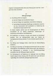möglicher Tochtergesellschaften dienen der Förderung der in den Abs. 1und2 genannten Ziele und Zwecke. $3 Stiftungsvermögen (1) Die Stiftung erfüllt ihre Aufgaben a) aus den Erträgen des Grundstockvermögens, b) aus den Erträgen der angestrebten wirtschaftlichen Betätigung, c) aus sonstigen Zuwendungen (Zustiftungen und Spenden), soweit sie von dem Zuwendenden nicht ausdrücklich zur Aufstockung des Grundstockvermögens bestimmt sind. Zu diesen Aufgaben gehören auch die Verwaltungskosten der Stiftung einschließlich der der Stiftung entstehenden Aufwendungen zur Unterhaltung wirtschaftlicher Geschäftsbetriebe. (2) Bei Zustiftungen und Spenden, die ganz oder teilweise aus Sachwerten bestehen, kann der Stiftungsvorstand diese zum Zwecke der Vermögensumschichtung veräußern. Für den Veräußerungserlös gilt Abs. 1 lit. c). (3) Die Stiftung kann Rücklagen bilden, soweit dies der Zweckverfolgung dienlich ist. | (4) Die Stiftung ist berechtigt, aus Vermögensumschichtungen oder aus einem wirtschaftlichen Geschäftsbetrieb erzielte Gewinne ganz oder teilweise für den Stiftungszweck zu verwenden, in eine Umschichtungsrücklage einzustellen oder dem Stiftungsvermögen zuzuführen. (5) Ein Rechtsanspruch auf Gewährung von Leistungen durch die Stiftung besteht aufgrund dieser Satzung nicht. Ein solcher kann auch nicht durch regelmäßige oder wiederholte Leistungen begründet werden.