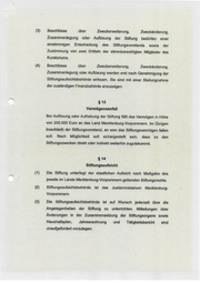 8) (4) (1) (2) 8) Beschlüsse über Zweckerweiterung, Zweckänderung, Zusammenlegung oder: Auflösung der Stiftung bedürfen einer einstimmigen Entscheidung des Stiftungsvorstands sowie der Zustimmung von zwei Dritteln der stimmberechtigten Mitglieder des Kuratoriums. Beschlüsse über Zweckerweiterung, Zweckänderung, Zusammenlegung oder Auflösung werden erst nach Genehmigung der Stiftungsaufsichtsbehörde wirksam. Sie sind mit einer Stellungnahme der zuständigen Finanzbehörde anzuzeigen. EB. Vermögensanfall Bei Auflösung oder Aufhebung der Stiftung fällt das Vermögen in Höhe von 200.000 Euro an das Land Mecklenburg-Vorpommern. Im Übrigen‘ beschließt der Stiftungsvorstand, an wen das Stiftungsvermögen fallen soll. Nach Möglichkeit soll sichergestellt sein, dass es den Stiftungszwecken direkt oder indirekt weiterhin zugutekommt. 814 Stiftungsaufsicht Die Stiftung unterliegt der staatlichen Aufsicht nach Maßgabe .des jeweils im Lande Mecklenburg-Vorpommern geltenden Stiftungsrechts. Stiftungsaufsichtsbehörde ist das Justizministerium Mecklenburg- Vorpommern. Die Stiftungsaufsichtsbehörde ist auf Wunsch jederzeit über die ‚Angelegenheiten der Stiftung zu unterrichten. Mitteilungen über Änderungen in der Zusammensetzung der Stiftungsorgane sowie Haushaltsplan, Jahresrechnung : und Tätigkeitsberichtt' sind unaufgefordert vorzulegen.