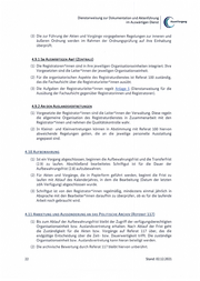 Dienstanweisung zur Dokumentation und Aktenführung im Auswärtigen Dienst GC (3) Die zur Führung der Akten und Vorgänge vorgegebenen Regelungen zur inneren und äußeren Ordnung werden im Rahmen der Ordnungsprüfung auf ihre Einhaltung überprüft. 4.9.1 IM AUSWÄRTIGEN AMT (ZENTRALE) (1) Die Registratoren*innen sind in ihre jeweiligen Organisationseinheiten integriert. Ihre Vorgesetzten sind die Leiter*innen der jeweiligen Organisationseinheit. (2) Für die organisatorischen Aspekte des Registraturdienstes ist Referat 100 zuständig, das die Fachaufsicht über die Registraturleiter*innen ausübt. (3) Die Aufgaben der Registraturleiter*innen regelt Anlage 5 (Dienstanweisung für die Ausübung der Fachaufsicht gegenüber Registratorinnen und Registratoren). 4.9.2 AN DEN AUSLANDSVERTRETUNGEN (1) Vorgesetzte der Registrator*innen sind die Leiter*innen der Verwaltung. Diese regeln die allgemeine Organisation des Registraturdienstes in Zusammenarbeit mit den Registrator*innen und nehmen die Qualitätskontrolle wahr. (2) In Kleinst- und Kleinvertretungen können in Abstimmung mit Referat 100 hiervon abweichende Regelungen gelten, die an die jeweilige personelle Ausstattung angepasst sind. 4.10 AUFBEWAHRUNG (1) Ist ein Vorgang abgeschlossen, beginnen die Aufbewahrungsfrist und die Transferfrist (2.9) zu laufen. Abschließend bearbeitetes Schriftgut ist für die Dauer der Aufbewahrungsfrist (2.8) aufzubewahren. (2) Für Akten und Vorgänge, die in Papierform geführt werden, beginnt die Frist zu laufen mit Ablauf des Kalenderjahres, in dem die Bearbeitung (Datum der letzten zdA-Verfügung) abgeschlossen wurde. (3) Schriftgut ist von den Registrator*innen regelmäßig, mindestens einmal jährlich in Absprache mit den Bearbeiter*innen daraufhin zu überprüfen, ob es für die laufende Arbeit noch gebraucht wird. 4.11 ANBIETUNG UND AUSSONDERUNG AN DAS POLITISCHE ARCHIV (REFERAT 117) (1) Bis zum Ablauf der Aufbewahrungsfrist bleibt der Zugriff der verfügungsberechtigten Organisationseinheit bzw. Auslandsvertretung erhalten. Nach Ablauf der Frist geht die Zuständigkeit für die Akten bzw. Vorgänge auf Referat 117 über, das die endgültige Entscheidung über die Zeit- bzw. Dauerwertigkeit trifft. Die zuständige Organisationseinheit bzw. Auslandsvertretung kann hieran beteiligt werden. (2) Die archivische Bewertung durch Referat 117 bleibt hiervon unberührt. 22 Stand: 02.12.2021