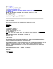 Von: BUERO-V Gesendet: Thu, 5 Jul 2018 14:02:55 An: Neumann, Andreas, VE3 Cc: Nicolin, Andreas, Dr., VESteffel, Margit, VE3BUERO-VE3 VE3BUERO-V Betreff: AW: BK'in Reise nach ARM, GEO und AZE - 23-25 August 2018 Wichtigkeit: Normal Vertraulichkeit: None Archiviert: Freitag, 6. August 2021 09:24:54 ___________________________________ Lieber Herr Neumann, Herr Franz ist einverstanden und bittet Sie die Information mit Büro St-N zu teilen. Beste Grüße V -----Ursprüngliche Nachricht----- Von: Neumann, Andreas, VE3 Gesendet: Donnerstag, 5. Juli 2018 12:09 An: Franz, Eckhard, Dr., V Cc: Nicolin, Andreas, Dr., VE; Steffel, Margit, VE3; BUERO-VE3; Nicolin, Andreas, Dr., VE; Betreff: BK'in Reise nach ARM, GEO und AZE - 23-25 August 2018 Wichtigkeit: Hoch Lieber Herr Franz, BKAmt informiert soeben (telefonisch), dass BK'in Reise in o.a. Länder (Reihenfolge noch nicht bestätigt) im Grundsatz gebilligt hat und die Vorbereitungen aufgenommen werden. Noch ==nicht== entschieden ist TN einer Wirtschaftsdelegation (auch wegen der heterogenen Interessen dort, aber auch wg. der ausgesprochenen Kürze der Reise und des sich daraus ergebenen gedrängten Programms); für den Fall, dass Wirtschaft teilnehmen soll, wäre Leitung der Unternehmerdelegation durch BMWi-(P)StS angezeigt/erwünscht. Sollten wir diese Information m.d.B.u. T.-Block in [...] an StN geben? Beste Grüße Andreas Neumann - VE3;