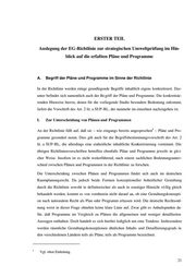 ERSTER TEIL Auslegung der EG-Richtlinie zur strategischen Umweltprüfung im Hin- blick auf die erfaßten Pläne und Programme A. Begriff der Pläne und Programme im Sinne der Richtlinie In der Richtlinie werden einige grundlegende Begriffe inhaltlich eigens konkretisiert. Dar- unter befindet sich namentlich auch der Be griff der Pläne und Programme. Die konkretisie- renden Hinweise hierzu, denen für die vorliegende Studie besondere Bedeutung zukommt, liefert die Vorschrift des Art. 2 lit. a SUP-RL, der nunmehr im einzelnen nachzugehen ist. I. Zur Unterscheidung von Plänen und Programmen 4 An der Richtlinie fällt auf, daß sie – wie eingangs bereits angesprochen – Pläne und Pro- gramme gesondert nennt. Dies gilt auch für die Begriffsbestimmungsvorschrift des Art. 2 lit. a SUP-RL, die allerdings eine einheitliche inhaltliche Konkretisierung vornimmt. Die übrigen Richtlinienvorschriften betreffen ebenfalls Pläne und Programme jeweils in gle i- cher Weise. Insofern ist es nicht weiterführend, nach einem sachlichen Bedeutungsunter- schied zwischen Plänen und Programmen in der Richtlinie zu forschen. Die Unterscheidung zwischen Plänen und Programmen findet sich auch im deutschen Raumplanungsrecht. Da jedoch beide Formen konzeptioneller hoheitlicher Gestaltung durch die Richtlinie sowohl in definitorischer als auch in sonstiger Hinsicht vö llig gleich behandelt werden, kommt es von vornherein nicht darauf an, ob eine Gestaltungskonzepti- on nach nationalem Recht als Plan oder Programm erlassen wird. Die deutsche Rechtsord- nung weist in dieser Frage ohnehin keine klare Linie auf. Zwar gibt es Anhaltspunkte da- für, daß Programme im Vergleich zu Plänen die allgemeinen und weniger detaillierten Aussagen enthalten. Doch handelt es sich hierbei lediglich um eine Tendenz. Insbesondere werden räumliche Gestaltungskonzeptionen ähnlichen Inhalts und Detaillierungsgrads in den verschiedenen Ländern teils als Pläne, teils als Programme bezeichnet. 4 Vgl. oben Einleitung. 21