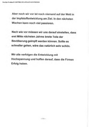 DocuSign Envelope ID: 6367FBBC-75C1-4F3C-A701-D21078225254 Aber noch wir vor ist noch niemand auf der Welt in der Impfstoffentwicklung am Ziel. In den nächsten Wochen kann noch viel passieren. Nach wie vor müssen wir uns darauf einstellen, dass erst Mitte nächsten Jahres breite Teile der Bevölkerung geimpft werden können. Sollte es schneller gehen, wäre das natürlich sehr schön. Wir alle verfolgen die Entwicklung mit Hochspannung und hoffen darauf, dass die Firmen Erfolg haben. -11-