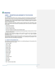 ~ FRONTEX ANNEX 1 - DESCRIPTION AND ASSESSMENT OF THE SITUATION 1. 1. Introduction Joint Operation Alexis 2014 has been conceived to support EU and Schengen Associated Country airports in respect of their own perceived vulnerabilities/needs concerning operational activities. The process by which airports have identified these and the methodology for the selection of common vulnerabilities needs to which Frontex provides the requisite operational support is described in detail in the Operational Plan. Airports in conjunction with Frontex decided to select the following as their vulnerabilities /needs where a joint activity could be launched in participating airports with the provision of appropriate human assets:· ■ Undocumented passengers ■ Transit without Visa Abuse ■ No shows at departure gates ■ Documents Swapping in Schengen and non Schengen airports ■ Interception and interviewing of inadequately documented passengers on being removed or refused entry by a non EU country This briefing document has been created in order to provide an overview of the risks and threats presented at the external air borders of the EU in respect of the above identified vulnerabilities/ needs. The document will assess the general threat and risks as well as the more specific ones associated with the airports which have agreed to participate or are considering their participation in the operation at the time of the drafting of this document. 1. 2. Airports in the operational area The foll owi ng a re the airports that have agreed or a re considering ta king part in the operation a t the tim e tha t t his docume nt was created : ■ Am ste rd a m (AMS) • Athe ns (ATH) ■ Barcelon a (BCN) ■ Be rga mo (BGY) • Bratislava (BTS) ■ Brusse ls (BRU ) ■ Bucha rest (OTP) ■ Buda pest (BUD) • Geneva (GVA) ■ Lisbon (LIS) ■ Luxembourg (LUX) ■ Lyon (LYS) ■ Madrid (MAD) ■ Milan (MXP) ■ Paris · Charles De Gaulle (CDG) 3/27