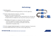 Methodology • Starting point; 0 no significant benchmarking possibility in the EU agencies; • Frontex made extensive research, including: 0 Survey which demonstrated that: "Weapons systems, conditions and requirements for storage and transportation are different and vary from country to country" ,□ Workshop with experts on weapons from MS, covering; - technical aspects for proper tender specification; - best practices in the relevant processes within MS; - Assessment of possible risks. • Frontex engaged external expert on national regulatory framework; • Frontex hired a law firm to provide written legal opinion. !:= FRONT EX Ill EUROPEAN BORDER AND COAST GUARD AGENCY