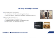 Security of storage facilities .• , .0. ■ Storage facilities established: 0 In compliance with the national regulatory basis; ° Following the best established standards for law enforcement; ■ Following the principles of; 0 Effective storage risk assessment; a Separate storage of firearms from ammuni tions; 0 Access control and perimeter security; iE: FRONT EX Ill EUROPEAN BORDER AND COAST GUARD AGENCY