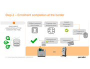 Step 2 – Enrolment completion at the border • FADO I 2 I Collect passport Passive chip I _,,,7 I I I document I chip image authentication I I I ENROLMENT I I check I I I COMPLETION AT THE I I I I BORDER ONE TIME I I 4 Fingerprint I I I ·print II I I I I re- ] capture ..... I &. I ~ I I =-:-; II . ♦ ♦ I I I Background I Payment? =>ayment? I (t>{ I I I I SLTD Checks I I I I I I I I I ♦ .. ♦ i ,.-------------------,--·~ I I OR DESK KIOSK 13 Frontex, Warsaw, 25th of September 2018 -CONFIDENTIAL- gemaJtox
