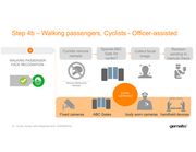 Step 4b – Walking passengers, Cyclists - Officer-assisted • WALKING PASSENGER FACE RECOGNITION 4 Cyclists remove helmets Special ABC Gate for cycles? Collect facial image Random sending to manual check Remove Motocycle Helmets EXTRA LIGHTNING? 1111 Fixed Fixed cameras camen ABC Gates body worn cameras handheld devices 16 Frontex, Warsaw, 25th of September 2018 -CONFIDENTIAL- gemaltox