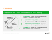 Conclusions Land borders are a weak link to address to close the loop .. 0 HOMOGENIZE: if we are not controlling land borders, .. solutions at airports have limited value LOGISTICAL CHALLENGE: can be addressed .. 0 by implementing RTP. Legal challenge to adress .. .. .. EFFICIENCY & SECURITY GAINS: No passport .. 0 reading on the border, opportunity for risk assessment .. . TECHNOLOGY: Gemalto has a range of technology to 0 help solve many issues at land and sea. ..... 19 Frontex, Warsaw, 25th of September 2018 -CONFIDENTIAL- gene.ltox