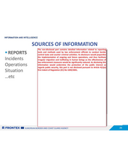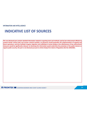 INFORMATION AND INTELLIGENCE INDICATIVE LIST OF SOURCES The non-disclosed part contains detailed information related to reporting tools and methods used by law enforcement officials to conduct border control tasks and counter criminal activities. Its disclosure would jeopardize the implementation of ongoing and future operations, and thus facilitate irregular migration and trafficking in human beings as the effectiveness of law enforcement measures would be significantly reduced. As disclosing this information would undermine the protection of the public interest as regards public security, this part is not disclosed pursuant to Article 4(1)(a) first indent of Regulation (EC) No 1049/2001. SZ FRONTEX EB zuRroPEAN BORDER AND COAST GUARD AGENCY