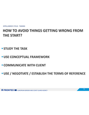 INTELLIGENCE CYCLE: TASKING HOW TO AVOID THINGS GETTING WRONG FROM THE START? = STUDY THE TASK = USE CONCEPTUAL FRAMEWORK = COMMUNICATE WITH CLIENT = USE / NEGOTIATE / ESTABLISH THE TERMS OF REFERENCE SZ FRONTEX BE zuROPEAN BORDER AND COAST GUARD AGENCY