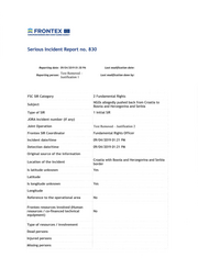 E== FRONTEX II EUROPEAN BORDER AND COAST GUARD AGENCY Serious Incident Report no. 830 Reporting date: 09/04/2019 01 :30 PM Last modification date: . Text Removed - Last modification done by: Reportmg person: .fi . I Just1 1cat1on FSC SIR Category 2 Fundamental Rights NGOs allegedly pushed back from Croatia to Subject Bosnia and Herzegovina and Serbia Type of SIR 1 Initial SIR JORA Incident number (if any) Joint Operation Text Removed - Justification 2 Frontex SIR Coordinator Fundamental Rights Officer Incident date/time 09/04/2019 01 :21 PM Detection date/ time 09/04/2019 01 :21 PM Original source of the information Croatia with Bosnia and Herzegovina and Serbia Location of the incident border Is latitude unknown Yes Latitude Is longitude unknown Yes Longitude Reference to the operational area No Frontex resources involved (Human resources I co-financed technica l No equipment) Type of resources / involvement Dead persons Injured persons Missing persons