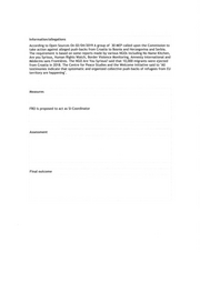 In formation/allegations According to Open Sources On 02/04/2019 A group of 30 MEP called upon the Commission to take action against alleged push -backs from Croatia to Bosnia and Herzegovina and Serbia . The requirement is based on some reports made by various NGOs including No Name Kitchen, Are you Syrious, Human Rights Watch , Border Violence Monitoring, Amnesty International and Medecins sans Frontieres. The NGO Are You Syrious? said that 10,000 migrants were ejected from Croatia in 2018. The Centre for Peace Studies and the Welcome Initiative said to "All testimonies indicate that systematic and organized collective push -backs of refugees from EU territory are happening". Measures FRO is proposed to act as SI -Coordinator Assessment Fi nal outcome