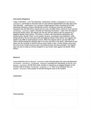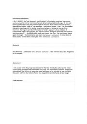 SE FRONTEX Ill EUROPEAN BORDER AND COAST GUARD AGENCY Serious Incident Report no. 18 Reporting date: 10/04/2015 11:21 AM Last modification date: 29/12/2016 10:54 AM . Text Removed - Reportmg person: Justification 1 Las t mod 1·t·,ea t·,on d one by: Justification Text Removed - 1 FSC SIR Category 2 Fundamental Rights Subject Alleged violation of Fundamental Rights Type of SIR 4 Final SIR JORA Incident number (if any) Joint Operation ·Focal Points 2015 Land Frontex SIR Coordinator .FRO Incident date/time 1 11 /02/201 5 12:00 AM Detection date/time 13/02/2015 12:00 AM Original source of the information Text Removed - Justification 2 Location of the incident Text Removed - Justification 3 Is latitude unknown Yes Latitude Is longitude unknown Yes Longitude Reference to the operational area No Frontex resources involved (Human resources I co-financed technical No equipment) Type of resources / involvement Text Removed - Justification 2 Dead persons Injured persons Missing persons