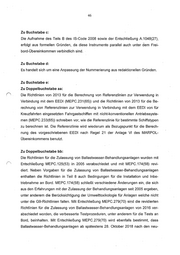 46 Zu Buchstabe c: Die Aufnahme des Teils B des IS-Code 2008 sowie der Entschließung A.1048(27), erfolgt aus formellen Gründen, da diese Instrumente parallel auch unter dem Frei- bord-Übereinkommen verbindlich sind. Zu Buchstabe d: Es handelt sich um eine Anpassung der Nummerierung aus redaktionellen Gründen. Zu Buchstabe e: Zu Doppelbuchstabe aa: Die Richtlinien von 2013 für die Berechnung von Referenzlinien zur Verwendung in Verbindung mit dem EEDI (MEPC.231(65)) und die Richtlinien von 2013 für die Be- rechnung von Referenzlinien zur Verwendung in Verbindung mit dem EEDI von für Kreuzfahden eingesetzten Fahrgastschiffen mit nicht-konventionellen Antriebssyste- men (MEPC.233(65)) schreiben vor, wie die Referenzlinie für bestimmte Schiffstypen zu berechnen ist. Die Referenzlinie wird wiederum als Bezugspunkt für die Berech- nung des vorgeschriebenen EEDI nach Regel 21 der Anlage VI des MARPOL- Übereinkommens benutzt. Zu Doppelbuchstabe bb: Die Richtlinien für die Zulassung von Ballastwasser-Behandlungsanlagen wurden mit Entschließung MEPC.125(53) in 2005 verabschiedet und mit MEPC.174(58) revi- died. Neben Vorgaben für die Zulassung von Ballastwasser-Behandlungsanlagen enthalten die Richtlinien in Teil 8 auch Bedingungen für die Installation und Inbe- triebnahme an Bord. MEPC.174(58) schließt verschiedene Änderungen ein, die sich aus den Erfahrungen mit der Zulassung der Behandlungsanlagen seit 2005 ergeben, unter anderem die Berücksichtigung der Umwelttoxikologie für Anlagen welche nicht unter die G9-Richtlinien fallen. Mit Entschließung MEPC.279(70) sind die revidierten Richtlinien für die Zulassung von Ballastwasser-Behandlungsanlagen von 2016 ver- abschiedet worden, die verbesserte Testprozeduren, unter anderem für die Tests an Bord, beinhalten. Mit Entschließung MEPC.279(70) wird ebenfalls bestimmt, dass Ballastwasser-Behandlungsanlagen ab spätestens 28. Oktober 2018 nach den neu-
