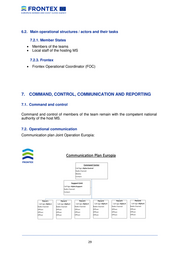6.2. Main operational structures / actors and their tasks 7.2.1. Member States • Members of the teams • Local staff of the hosting MS 7.2.3. Frontex • Frontex Operational Coordinator (FOC) 7. COMMAND, CONTROL, COMMUNICATION AND REPORTING 7.1. Command and control Command and control of members of the team remain with the competent national authority of the host MS. 7.2. Operational communication Communication plan Joint Operation Europia: __________________________________________________________________________________ 29