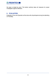 the case is closed by court. The border authority takes all measures for proper investigation against traffickers. 9. EVALUATION Evaluation of the Joint Operation will be done with all participants during the debriefing on Thursday. __________________________________________________________________________________ 32