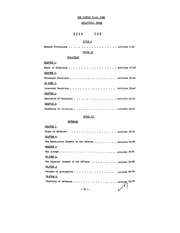 THE LIBYAN PxnAL CODE ANALYTICAL INDEX BOOK Io iz Ne ZITLE I General Provisions » » «ee. eeeeeeeee een. . Articles 1-16 TITLE II PENALTIES _ CHAPTER 1. Kinds of Penalties «©.» ce oe ee rennen een e . . Articles 17-18 CHAPTER 2. Principal Penalties . » ee ee ee 0e.en 000. . Articles 19-32 CH PIER 3. hecessory Penalties », © 2 ce ee ee ee ee. 0.00. . Articles 33-40 CHAPTER 4. Execution of Penalties ». ». » 2 ee. een nn. » Articles 41-45 CHAPTSR 5. Plurality of ve.ialties » oo 0 ee eo ee een ee. . Articles 46-51 TITLE III OFFENCES CHAPTER 1. Kinds of Offenes . vv ee one een een. Articles 52-55 CHAPTER 2. The Substantive Element of the Offence „ .» x 2 2... . Articles 56-58 CHAPTER 3. The ättempt » 2 ev ee re rennen een. Articles 59-61 CH.,PTER 4. The Physical älement of the Offence . sv 2 2 2 2 0 2. Articles 62-68 CH.PTER 5. Grounds of äxeulpation » » se v ee ee een en. Articles 69-75 CH.PTER 6, Plurality of Offences © 2 2 v0 m 2 onen anna. Articles 76-78 \ -TM-. Ru