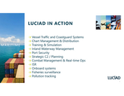 LUCIAD IN ACTION → Vessel Traffic and Coastguard Systems → Chart Management & Distribution MARITIME → Training & Simulation → Inland Waterway Management → Port Security Luciad Confidential - do not distribute externally → Strategic C2 / Planning → Combat Management & Real-time Ops → ISR → Onboard systems → Fisheries surveillance → Pollution tracking 2
