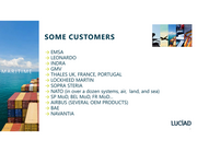 SOME CUSTOMERS → EMSA → LEONARDO → INDRA → GMV MARITIME → THALES UK, FRANCE, PORTUGAL → LOCKHEED MARTIN → SOPRA STERIA Luciad Confidential - do not distribute externally → NATO (in over a dozen systems, air, land, and sea) → SP MoD, BEL MoD, FR MoD… → AIRBUS (SEVERAL OEM PRODUCTS) → BAE → NAVANTIA 3