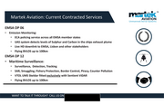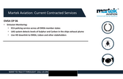 TM ea Martek Aviation: Current Contracted Services AVIATION Unmanned Aerial Systems EMSA OP 06 °e Emission Monitoring: ° ECA policing service across all EMSA member states ° LAS system detects levels of Sulphur and Carbon in the ships exhaust plume ° Live HD downlink to EMSA, Lisbon and other stakeholders WANT TO TALK IT THROUGH? CALL US ON