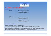 4.1 Quantitative Results The importance of the number of training images Setups GA (%) CAA(%) IoU D SET 1 (49 99.16 71.10 0.6212 0.3519 training images) SET 2 (29 99.16 64.41 0.5761 0.2725 training images)