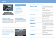 MODAR Laser Safety detector CHANNEL1 Daylight camera Total height 1.232 mm CHANNEL 3 Low-light camera Motion stabilised Optical Laser CHANNEL 4 Detecting Range-finder Thermal imaging camera And Ranging CHANNEL 2 Range-gated laser Range-gated camera Innovative Multi-Sensor-System CHANNEL 1: Daylight camera (colour) A full-HD-CMOS camera with 36x optical zoom ensures a Laser safety detector The security concept certified by the trade association FOR IMPLEMENTATION ON LARGE SHIPS (> 40 METRES) high-quality colour image in daylight and good visibility. ensures, through the laser security detector, that there is no danger in using the laser. CHANNEL 2: Range-gated camera & short pulse laser CHANNEL 3: Low-Light camera (night vision) The MODAR multi-sensor system was specially designed Pan-tilt head technology with swell The range-gated camera technology/active imaging allows A very sensitive electron-multiplicator-CD camera with a for use at sea and has already been successfully imple- stabilisation the fading out of atmospheric interferences and thus visibi- 60x optical zoom provides the best image results even in mented on several ships of the German Federal Police/ lity through snow, fog and ship windows. In conjunction with extremely low light. Coastal Guard. It allows a visually exact, collision-preventing State-of-the art sensor technology and drives in the a short pulse laser and an IICCD camera (Image Intensifier The laser installed on the MODAR can be used in the inte- monitoring as well as a precise terrestrial localisation of pan-tilt head compensate for the movement of the CCD) with a powerful lens, this makes it possible to observe grated low-light channel as a lighting source, if there is no swimming and fixed objects in real time, for distances of up observation system on two axes. The stabilisation allows objects at long distances (up to 12 km). light source close to the scene to be observed. to 12 kilometres. monitoring across long distances and thereby ensures an Four different camera technologies, assisted by invisible overall image. Laser range-finder (LRF) CHANNEL 4: Thermal imaging camera (infrared) laser lighting, allow the best visibility in all light and weather Possible atmospheric interferences in the image are sup- The laser range-finder installed in the MODAR, mainly used A thermal imaging camera with a 9x optical zoom makes it conditions: ressed by the high-tech range-gated camera technology. for military purposes (LRF, laser class 1 M), makes it possib- possible to detect and target ships and living objects at long le to precisely measure the distance of objects in a range of distances through the detection of temperature differences A daylight camera with a zoom lens for daytime 5 metres to 15 km. Due to the high measurement frequency (in case of fog, for example). monitoring in colour (1x per second), the LRF even reliably records objects at high A low-light camera for monitoring in very low light speeds. The LRF also makes it possible to determine the The windscreen wiper system allows an auto- conditions (night) coordinates of the target objects. matic cleaning of the camera viewing windows A thermal imaging camera for detecting temperature differences if necessary. A range-gated camera that makes it possible to reduce atmospheric interferences such as fog, rain or snow in the image. The range-gated camera uses a laser for the active lighting. The cameras acquire in parallel, so a view change between the cameras capturing in parallel is possible at any time through the operating software, in order to choose the best channel for each observation task. 8 9
