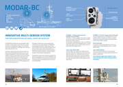 MODAR-BC CHANNEL1 Range-gated camera & daylight camera Total height 739 mm Short pulse laser Laser Motion stabilised Safety detector Optical CHANNEL 2 Detecting Laser Thermal imaging camera And Range-finder (infrared) Ranging Innovative Multi-Sensor System CHANNEL 1: Range-gated camera & daylight camera (colour) CHANNEL 2: Thermal-imaging camera (infrared) A thermal imaging camera with a 9x optical zoom makes it FOR IMPLEMENTATION ON SMALL SHIPS OR VEHICLES The channel 1 contains a daylight camera with five megapi- xels as well as a zoom with a focal range of 20 to 750 mm possible to detect and target various objects or people at long distances through the detection of temperature diffe- for optimum visibility in daytime. rences (in case of fog, for example). For bad visibility conditions (fog, rain, snow…) or in darkness, The MODAR-BC by OptoPrecision was developed for imple- Atmospheric interferences as well as seeing through it is possible to switch to the range-gated camera. The laser Short pulse laser mentation on smaller ships or vehicles after the successful window panes are no longer obstacles. The MODAR-BC of the range-gated channel can also be used as a source of In conjunction with the range-gated camera, this source introduction of the MODAR technology on German Federal is also equipped with the gyro-stabilised pan-tilt head. light to support the daylight camera. of light allows the selective lighting of scenes in a chosen Police ships. The MODAR-BC is accordingly smaller, with only Particularly high-quality drivers without backlash are used distance range. slightly reduced performances. for this, as they are well-suited to the permanent com- pensation of the vehicle movement. The precise direction Laser range-finder (LRF) Laser safety detector It also allows optical monitoring in nearly any weather con- of the camera channel visual axes thus achieved makes it The laser range-finder installed in the MODAR-BC (LRF, The security concept certified by the trade association ditions, day and night. Object-tracking, sector scan as well possible to monitor objects at large distances. laser class 1 M) makes it possible to precisely measure the ensures, through the laser security detector, that there is no as optional large depiction of the camera channels make it distance of objects up to 10 kilometres away. Due to the danger in using the laser. possible to analyse the right image source for each situation. The permanent overview with simultaneous analysis of de- high measurement frequency (up to 20x per second), the As well as the high-performance uncooled and thus very tails on the target object is ensured by the MODAR-BC with LRF even reliably records objects at high speeds. The LRF The windscreen wiper system allows an auto- long-lasting thermal imaging camera, the laser lighting the help of the different camera channels and zoom lenses. also makes it possible to determine the coordinates of the matic cleaning of the camera viewing windows invisible to the naked eye is a particularly effective tool in the The operator panel for controlling the device is laid out as target objects. if necessary. service of public security. Scenes with difficult lighting condi- in the larger MODAR. tions can thus be significantly lit. 14 15