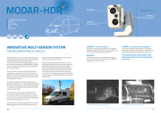 MODAR-HDR NIR Laser Total height 739 mm CHANNEL 2 Camera for facial recognition Motion stabilised Optical CHANNEL1 Detecting Monitoring camera And Ranging Innovative Multi-Sensor System CHANNEL 1: Overview camera The channel 1 contains a high-definition 4.2-megapixel CHANNEL 2: camera for facial recognition The channel 2 contains a high-definition 4.2-megapixel daylight and night vision camera for overview pictures with daylight and night vision camera with a 40-1500 mm zoom FOR IMPLEMENTATION IN VEHICLES filter changer with IR edge and bandpass filter. lens and filter changer with IR edge and bandpass filter. NIR Laser The windscreen wiper system allows an auto- The MODAR-HDR multi-sensor system allows the monito- system with line of sight stabilisation and the solid and With the zoom lenses, synchronised additional lighting matic cleaning of the camera viewing windows ring and identification of people as well as the acquisition of robust casing (protection class IP67). sources for the cameras on channels 1 and 2. Lighting of if necessary. high-definition pictures of faces, day and night. target objects up to 2-3 km away. The assistance of NIR laser technology and the use of spe- With its telescopic mast, the MODAR-HDR can also be cial interference filters allow the MODAR-HDR to recognise extended to a height of up to 4 meters above the ground. drivers in a range of up to 400 m in practically all lighting Depending on the vehicle type and customer require- and weather conditions. ments, the MODAR-HDR can disappear completely into the emergency vehicle or return to a case on top of the The high-definition images are recorded, optimised and vehicle roof. The construction of the vehicle, the equip- analysed by our software in real time. The simultaneous ment of the PC work stations in the vehicle as well as the depiction of overview and detailed images make it possible system integration of the MODAR-HDR are conducted by to keep an overview of a crowd of people or a scene, while OptoPrecision. identifying individual people. The successful suppression of interfering light sources (headlamps, street lamps or sunlight for example) developed through our technology and the minimisation of atmosphe- ric interferences are essential in many situations to obtain evidence-worthy images. For the public space and for short-range requirements, exclusively eye-safe lasers of the laser class 1 are used. For particular tasks or for long-range setups, lasers of the laser class 4 (not eye-safe) can also be used, as they allow a longer monitoring range of up to 2-3 km. The MODAR-HDR is optimally equipped for use in vehicles (Mercedes Sprinter, VW Crafter, etc.) through the pan-tilt Acquisition from approx. 20 m distance Acquisition from approx. 400 m distance 16 17