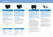 LaserfLASH LaserFlash Compact LaserFlash F LaserFlash P IT LaserFlash P QCW Invisible short-range illumination Discrete system thanks to small size IR illumination up to an effective range of 250 m (1) IR illumination up to an effective range of 200 m (1) Integrated Li-Ion battery for off-grid operation Invisible illumination for medium ranges Bright and cost-effective thanks to integrated � Invisible and eye-safe light 24/7 operation with external power supply Stable lighting conditions with stray light TrigBox Suitable for IP and analog cameras without Good lighting conditions despite stray light Password protected activation of laser class Compact size synchronization Outdoor capability up to IP-65 3R mode Invisible and eye-safe light Compact size Suppression of interfering light influences Suppression of interfering light influences High image quality even in difficult light conditions Application with laser class 3R possible for long Product Description Product Description distances High image quality even in difficult lighting LaserFlash Compact is able to illuminate rooms and LaserFlash F infrared laser illumination is suitable for other target scenarios with invisible infrared laser light discrete monitoring tasks up to a maximum distance Product Description conditions and stabilizes (2) the lighting conditions during under- of 50 m (1). The light is guided via an optical fiber to a LaserFlash P IT is able to illuminate objects with invi- cover video surveillance. Distances of 15 m (1) can be small lens, which can be mounted outdoors. The optical sible laser light at distances of up to 250 m (1). illuminated temporarily for one night using the built-in fiber is available up to a length of 15 m. This allows a To use the maximum amount of light, the integrated Product Description lithium-ion battery or permanently with the power ad- very high degree of concealment. electronics synchronize the laser with the exposure LaserFlash P QCW illuminates objects with invisible la- apter. LaserFlash Compact is operated by a push-but- time of the analog video camera. ser light at distances of up to 200 m (1) without having ton and can therefore be activated within seconds. The use of infrared lasers can reduce the influence to sync with the cameras used. Several cameras and of disturbing light and lighten dark areas. This allows In combination with an infrared-sensitive camera, the night vision devices can be supported at the same time Synchronization with the camera is not necessary undercover operations in the most difficult lighting LaserFlash P IT is ideally suited for covert investiga- with infrared light for demanding night-time observa- and no cable connections are required. Its unobtrusi- conditions. tions or military operations. tions. ve design allows the device to be left behind without Its compact design makes it ideal for mobile applica- arousing immediate suspicion. tions. The 12 V operating voltage is ideal for mobile appli- The beam angle can be easily adapted to the different cations. The beam angle can be easily adapted to the The laser is absolutely harmless and can therefore be applications with the available lenses. different applications with available lenses. used without any reservations. Important Technical Details Important Technical Details Important Technical Details Important Technical Details Wavelength 785/808/940 nm Wavelength 785/808/940 nm Wavelength 905 nm Wavelength 940 nm Range at 785/808 nm up to 250 m Range at 785/808 nm up to 200 m Range 15 m Range LK1/15 m, LK3R/50 m, LK4 Range at 940 nm up to 150 m Range at 940 nm up to 120 m Synchronization with analog Camera No Synchronization with analog Camera Yes Synchronization with analog Camera Yes Synchronization with analog Camera No Digital-Camera ready Yes Digital-Camera ready No Digital-Camera ready YES Digital-Camera ready Yes Available Emission Angles 30° Available Emission Angles 3°, 5°, 12°, 23° Available Emission Angles 3°, 5°, 12°, 23° Available Emission Angles 3°, 5°, 12°, 23° (1) Range depends on the wavelength used, sensor sensitivity, reflectivity of the object, transmission of the lens (max @ 785 nm) (1) Range depends on the wavelength used, sensor sensitivity, reflectivity of the object, transmission of the lens (max @ 785 nm) 26 27