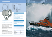 LED Searchlight Product Features Efficient light source with low power consumption and low heat emission No need to replace the light source during product life Reliable IP67 enclosure with waterproof drying cartridge Optics focusable Compact design with high range No glare outside the illuminated area Fast switchable light source for the exchange or transmission of optical codes LED searchlight Applications Searchlight for SAR missions for spot illumination of scenes and ob- Well-defined spot lighting for long distance illumi- jects at distances up to approx. 2,500 m nation Navigational aid LED searchlight OPS was developed as an innovative light Transmission of light signals and Morse code source equipped with the latest OSRAM LED technology in a particularly compact and durable design. Thanks to the LED technology used, the product has a very low energy Important Technical Details consumption and emits almost no heat. 10-18 V DC or Voltage 90-240 V AC The high-quality optics achieve very homogeneous illumi- nation results when focused ± 2° with very little scattered Average Power Consumption 200 W light outside the beam cone. Color Temperature 6.000 K Due to the excellent beam profile the spot provides cut- Light Power 12.000 lm ting-edge lighting performance. Range 2.500 m The minimum required supply voltage of 10-18 V DC (opti- Emission Angle ± 2° onally 90-240 V AC) is particularly advantageous for use in Operating Temperature -40°C - +55°C mobile applications. The housing with IP protection class 67 is pressure-tight and seawater-resistant and withstands Protection Class IP 67 short-term flooding. Durability >20.000 h Weight 12 kg 34 35