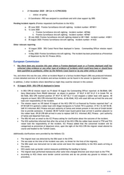 21 November 2020 – SIR Cat 4 (12790/2020) o status: on-going; o SI Coordinator: FRO was assigned to coordinate and with close support by ORD. Pending Incident reports (Frontex requested clarifications to the HCG) a. 09 June 2020 – Frontex Surveillance Aircraft sighting – Incident number: 4074011 b. 12 June 2020 i. Frontex Surveillance Aircraft sighting – Incident number: 407466 ii. Frontex Surveillance Aircraft sighting – Incident number: 407467 c. 28 July 2020: Frontex Surveillance Aircraft sighting related to SIR 11860 – incident number: 410811 d. 05 August 2020: Frontex Surveillance Aircraft sighting – Incident number: 411632 Other relevant reporting 10 August 2020: DEU Costal Patrol Boat deployed in Samos – Commanding Officer mission report no.19 14 May 2020: Frontex Surveillance Aircraft sighting - The incident has been presented as a Prevention of Departure by the ICC Piraeus (HCG). European Commission 1. Has there been any occasion this year where a Frontex-deployed asset or a Frontex deployed staff has collected video evidence or any other type of evidence of incidents which could have been or should have been qualified as pushbacks, either by the Hellenic Coast Guard or by any other entity or body? Yes, and where this was the case, either an Incident Report or a Serious Incident Report (SIR) was produced/initiated. A more detailed overview of all incidents and serious incidents can be found in the answer to Question 2 below. In addition, 2 other incidents where identified as might they could be relevant in this context: A. 10 August 2020- DEU CPB 62 deployed in Samos In DEU CPB 62 mission report no.19 dated 10 August the Commanding Officer reported: At 06:00AM, GRC Navy Observation Point PRASO detected an object in position 37°50,0’ N 027°01,0‘ E in Greek TW. At 06:15AM, DEU CPB reached position 37°49,9’ N; 027°02,1’ E and stopped a rubber boat with approx. 40 migrants on board. DEU CPB informed HCG Samos. At 06:45AM, HCG with asset 604 was arrived the area and took over responsibility of the incident. The mission report no.105 dated 10 August of the HCG CPB 513 co-financed by Frontex reported that”: at 07:50 SAR 513 spotted a rubber boat with illegal immigrants in Turkish TW in position: 37 55.1 N; 027 05.9E. SAR 513 informed JRCC Piraeus and port authority of Samos and remain present in the area of Greek border line to provide assistance, if needed. 08:40 Turkish Coast Guard patrol boat arrived in position adjacent to the rubber boat. 09:20 CPB 604 arrived in area to replace SAR 513. Informed JRCC Piraeus - port authority of Samos and departed from area. The DEU NO sent an email to the ICC Piraeus asking for clarification about the outcome of the incident. The HCG authorities informed that after the arrival of the HCG CPBs the rubber boat moved in TTW and TCG vessel took the responsibility of the incident. ICC Piraeus added that the concerned incident will be categorized as prevention of departure since, upon the sight of the HCG CPB the migrant vessel altered its course and headed to the Turkish Coasts. Additionally clarifications were provided by the Hellenic CG: The migrant boat was detected by the DEU asset in the GTW; The sea state at the time of the incident was calm, no threat for the lives of the migrants; The DEU asset was instructed not to take action and leave the responsibility to the HCG assets arriving at the scene; HCG assets took up border control measures prohibiting the landing to Samos; The migrant boat performed manoeuvres after some time changed direction and return back to the TTW; According to HCG these were border control activities and do not provide any ground to initiate a SIR procedure. 4/18