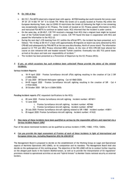 Annex Report on the questions received following the Extraordinary MB Following allegations of the push backs in the Eastern Mediterranean as reported by several media outlets, the Agency has launched an internal inquiry to provide adequate information on the incidents in a transparent manner. Taking into account the complexity and the scope of the process it has been divided into three stages. The first stage included the comprehensive overview of the incidents as reported by the media as provided by the Executive Director during the Extraordinary Management Board meeting on 10 November, where representatives of the European Parliament were also invited. The second stage has been based on the follow-up questions received by the Agency from the Commission as well as Germany and Switzerland which are answered by this report and will be explained during the 82nd Management Board meeting to take place on 25 – 26 November 2020. The third stage of the process will be a further inquiry conducted by the MB Working Group which is planned to be established during the 82nd MB meeting. Switzerland 1. How does the Executive Director intend to clarify where such Serious Incident Reports should have been filed? The Operational Plan (OPLAN) defines the tasks and responsibilities of all participants in the Operational Activities which need to be respected, including regular incident reporting and reporting of cases of alleged violations of Fundamental Rights which could be assigned as SIRs. 2. How will the Executive Director ensure that the internal reporting system is solid and effective in order to allow for an immediate follow-up in case of incidents? As soon as a SIR is initiated, such as in cases of alleged violation of Fundamental Rights, a Serious Incident Coordinator is assigned. This ensures the proper follow-up of the cases escalated as SIRs. An exceptional reporting mechanism (as defined in the SIR Standard Operating Procedure) can be applied, for example when the reporting person has concerns that the disclosure of sensitive information on possible violation of Fundamental Rights or the Code of Conduct via the SIR mechanism could have consequences on their or others’ integrity, reputation or deployment. After acknowledgement of such information, the participant shall immediately report such incidents to the Frontex Situation Center (FSC). 3. How will the Executive Director ensure that the evaluation committee to be tasked with investigating all aspects regarding the possible pushback incidents and in particular legal issues related to the management of the external borders and operations at sea is adequately independent? The Management Board is proposed to decide on the establishment of the Working Group on Legal and Operational aspects of Maritime Operations (WG LOMO), on its composition and its mandate. The Management Board shall also decide on the spokesperson of this working group. The objective of the WG LOMO will be to conduct further inquiries on the alleged push backs in the Eastern Mediterranean, as well as to provide the interpretation of EU regulations’ provisions related to operational activities at sea and “hybrid threats” to Member States national security at external borders. Frontex - European Border and Coast Guard Agency www.frontex.europa.eu | Pl. Europejski 6, 00-844 Warsaw, Poland | Tel. +48 22 205 95 00 | Fax +48 22 205 95 01