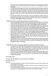 patrolling in the area was informed via VHF with negative results. At the view of HCG FIB the rubber boat altered course on its own and headed towards to Turkish coasts”. No FSA sighting in relation to this incident. 2. The JORA incident 407206, reports the following: “A boat with approximately 50 migrants on board was early detected by HCG OPV 080 at the sea area "Skala Sykamnia" North of Lesvos island, inside TTW. After detection JRCC Piraeus informed MRCC Ankara and a TCG boat which was already patrolling in the area took over responsibility of the incident”. FSA sighted a white rubber boat with approx. 20 POB, sailing 5 knots, course 270. One Turkish CG patrol vessel nearby. At 04:23, FSA observed the rubber boat with approx. 20 POB, trying to evade the Turkish Coast Guard. A second patrol boat nearby was probably HCG 3. The JORA incident 407258, reports the following: “a boat with approximately 16 migrants onboard was early detected by HCG CPB at the sea aarea East of Farmakonisi island, inside TTW. After detection JRCC Piraeus informed MRCC Ankara and a TCG boat arrived in the area and took over responsibility of the incident”. No FSA sighting in relation to this incident. 15 August 2020: 5 incidents, classified by Greek authorities as preventions of departure: 1. “a boat with approximately 40 migrants onboard was early detected by HCG SAR vessel 513 at the sea area East of Samos island inside TTW. At the view og HCG SAR vessel 513 the rubber boat altered course by her own initiave/will towards the Turkish coasts”. No FSA sighting in relation to this incident. 2. “rubber boat with approximately 40 migrants onboard was early detected by HCG FIB 1006 at the sea area East of Samos island inside TTW. At the view of HCG FIB 1006 the rubber boat altered course by her own initiave/will towards the Turkish coasts.” No FSA sighting in relation to this incident. 3. “On 15th August a rubber boat with approximately 60 migrants onboard was early detected by ROU CPV 1102 and HCG OPV 070 at the sea area North East of Lesvos island inside TTW. After detection JRCC Piraeus informed MRCC Ankara and at 11:40 LT three (03) TCG boats which were already patrolling in the area took over responsibility of the incident.” No FSA sighting in relation to this incident. 4. “On 15th August at 20:00 LT a rubber boat with approximately 30 migrants onboard was early detected by ROU CPV 1102 at the sea area North of Lesvos island inside TTW. After detection JRCC Piraeus informed MRCC Ankara. At the view of ROU CPV 1102 the rubber boat altered course on her own initiative/will and headed towards the Turkish coasts where all migrants were safely disembarked.” No FSA sighting in relation to this incident. 5. “On 16th August at 01:05 LT a boat with approximately 50 migrants onboard was early detected by HCG OPV 080 at the sea area SE of Lesvos island inside TTW. After detection JRCC Piraeus informed MRCC Ankara and at 03:10 LT a TCG boat arrived in the area and took over responsibility of the incident” No FSA sighting in relation to this incident. 19 August 2020: two incidents were reported classified by Greek authorities as preventions of departure: 1. “A rubber boat with approximately 40 migrants onboard was early detected by LTU HELO at the sea area North of Lesvos island inside TTW. Immediately the information passed to HCG CPB 602 and simultaneously JRCC Piraeus informed MRCC Ankara. At the view of HCG CPB 602 the rubber boat altered course on her own initiative/will and headed towards the Turkish coasts under the close monitoring of a TUR CG vessel.” No FSA sighting in relation to this incident. 2. A rubber boat with approximately 50 migrants onboard was early detected by HCG OPV 090 at the sea area South of Lesvos island inside TTW. After detection JRCC Piraeus informed MRCC Ankara and at 11:40 LT a TUR CG boat arrived in the area and took over responsibility of the incident. No FSA sighting in relation to this incident. Serious Incident Report: 18-19 April 2020 – SIR 11095/2020 – Frontex Surveillance Aircraft Sighting: Description of the case: 18.04.2020 At 22:58 HCG Sea Border Expert, based in ICC Piraeus informed FSC Team Leader about an incident north of Lesvos asking to reach the point. At 23:05 Frontex Surveillance Aircraft (FSA) spots a rubber boat with approx. 20-30 POB, stopped, and one Greek Patrol vessel is very close. At 23:22 FSC Team Leader sends the Early Warning report to the competent Greek Authorities (incident inside Greek TW - Two HCG patrol boats and one TCG are in the vicinity of the target). 8/18