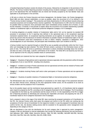 A Standard Operating Procedure consists the details of the process, followed by its integration in the provisions of the OPLANs. The Serious Incidents Reporting procedure including Serious Incidents Catalogue is available in the General part of the Operational Plan and Handbook that are shared and formally accepted by the host Member State and applicable to all participants in the activities. A SIR aims to inform the Frontex Executive and Senior Management, the Member States, the Frontex Management Board (MB) and other relevant stakeholders, as soon as possible, about the occurrence of a SI as defined in the “Frontex Serious Incident Catalogue”. The production and timely dissemination of a SIR contribute towards enhancing situational awareness and increasing Frontex reaction capabilities. The dissemination of a SIR is the first internal step for possible follow-up measures. Every participant shall report immediately serious incidents (SI) to Frontex, in case he/she witnesses, is involved, or has grounds to suspect about the occurrence of an incident representing a possible violation of fundamental rights or international protection obligations (Category 4 of SI Catalogue). SI involving allegations on possible violation of fundamental rights and/or CoC can be reported via standard SIR procedure in accordance to the SI reporting lines defined in the operational plan or the exceptional reporting mechanism explained below. An exceptional reporting mechanism can be applied, for example when the reporting person has concerns that the disclosure of sensitive information on possible violation of fundamental rights or the CoC via the SIR mechanism could have consequences on their or others’ integrity, reputation or deployment. After acknowledgement of such information, the participant shall immediately report such incidents to the FSC. A Serious Incident must be reported through an initial SIR as soon as possible and preferably within the first 2 hours after such knowledge has been attained. The initial SIR shall contain a summary of the information known at that point of time. This initial SIR serves as preliminary information to obtain immediate knowledge about the incident, and does not need, at this stage, a specific confirmation of the incident. The initial SIR is not bound by any form and can be reported to the FSC using any available means of communication. Serious Incidents are clustered into four main categories (SI-Catalogue): Category 1 - Situations of high political and/or operational relevance especially with the potential to affect EU border management of one or more MS/SAC including crisis situations; Category 2 - Incidents occurring in Frontex operational and non-operational activities and not related to Frontex staff and/or other participants in Frontex activities; Category 3 - Incidents involving Frontex staff and/or other participants in Frontex operational and non-operational activities; Category 4 - Situations of possible violations of Fundamental Rights or international protection obligations. The SIR Mechanism does not exclude the possibility of consultation at the initial stage of first assessment between FSC and other internal actors, allowing for the most appropriate further action, for the escalation of an event as Serious Incident and the proposal of the SI Coordinator. Due to the possible impact and the multilateral issues generated by a specific SI, a SI-Coordinator shall be assigned upon respective proposal by the FSC, according to the SI categories illustrated in the SI-Catalogue. The SI-Coordinator is responsible for the follow up, the coordination and the closure of the SI. It is the responsibility of the FSC to trigger the SI Reporting procedure by identifying and contacting the responsible unit/sector and proposing the role of SI- Coordinator based on the SI categories illustrated in the SI-Catalogue. Such a proposal is done at the stage of the initial SIR. Upon receiving the proposed nomination as SI-Coordinator by the FSC, the relevant Frontex entity shall assess the proposal and confirm to the FSC within one working day the acceptance of his/her role as SI-Coordinator for the respective incident. In case the proposed SI-Coordinator does not confirm his/her role, the decision making process shall be escalated to the appropriate senior management level depending on the category of the SI. SIRs are distributed in line with the distribution list for each category that is approved by senior management. Category 4 SIRs are distributed to internal stakeholders that include the following distribution lists and functional e- mail addresses: DIEC, DORD, DSAM, Executive Director, FMM, FSC-SDO, HoO.BRU, HoO.MPR HoO.FRO, HoS.Hub, HoU.CGLE, HoU.FDU, HoU.LOU, HoU.RAU, HoU.LPU, DCBD, DCGO. 11/18