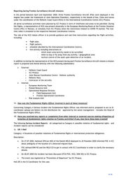 in combatting migrant smuggling since 2016; Frontex included in the scope). 10 ECA Performance audit on EU Notification letter received Ongoing readmission arrangements with 3rd 04/11/2019; countries (to assess the EU progress since Series of interviews held; 2015 in concluding relevant various documentation readmission agreements or similar provided to the auditors arrangements with priority third countries, and the EU action to facilitate effective implementation of third countries' readmission obligations; auditees include: Frontex, EEAS, SG, DGs HOME, DEVCO and NEAR) 11 European DG Defence and Space (DEFIS) – Field work/online 16- Ongoing Commission audit of Copernicus Delegation 20/11/2020 Agreement – AIR 2019 12 European DG NEAR 2020 Residual Error Rate Field work/online Ongoing Commission Study – audit done by a private November-December 2020 audit form BDO LLP – Frontex Eastern Partnership Integrated Border Management Capacity included in the sample Concluding Remarks The considerations and facts described in the report above and passed audits prove that the currently implemented reporting system works and is effective. With due regard to new developments, Frontex is working towards improving the efficacy of the system, including as a part of a holistic process towards the digitalisation of the work of the Agency and the utilisation of new tools. One such tool is the evolution of the Eurosur, which is moving towards becoming the most comprehensive system of collecting of different type of information at the external borders. At the same time, the JORA already represents an upgrade to the reporting system and has brought about significant improvements. Further investment is needed into the integration and upgrade of these existing systems and processes and the Agency is currently working on a comprehensive information management policy and processes. This area of activity is proposed to be reinforced and structured within the organizational model of the Agency under the direct supervision of one of the Deputy Executive Directors, which will significantly enhance the Agency’s performance in this area and quality of the service towards the MS/SAC. In addition to investing into new tools, Frontex has implemented improvements as regards the dedicated human resources at HQ level. JORA events are validated in HQ by a specialized team of experts and that has been an important step in the communication with the host MS authorities and professionalization of the process. Furthermore, Serious Incidents Reports (SIRs) can be launched by any participant in the process, and Frontex has noted the effectiveness of this procedure. The SIRs are categorized in four categories and there is a procedure relevant to each of those categories. As a part of the processing of SIRs, escalation procedures are also in place. Such escalations have already occurred based either on discussions held at the ICC, or stemming from questions asked during the validation process of JORA incidents. There have also been instances where the Executive Director has addressed the Commander of the HCG and the Greek Minister in writing as described several times in this report to reinforce the timeliness and efficiency of reaction on Frontex side. It is important to highlight that access has never been denied to the FRO in the distribution list when communicating internally on SIRs; to the contrary FRO was always included in any SIR with a potential FR component. While exploring ways to improve the reporting systems, the four SIR categories as well the assignment of coordinators, as described in the report may need to be revised to take into consideration the occurrence of situations that might be related to a possible threat to the national security or national defense of the Host Member State or any Member State participating in a joint operation. This is particularly important as Frontex and its MS/SACs partners operate in a geopolitical context at the external borders of the EU. 17/18