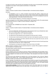 Reporting during Frontex Surveillance Aircraft missions: In the period between April and September 2020, three Frontex Surveillance Aircraft (FSA) were deployed in the Aegean Sea (under the framework of Joint Operation Poseidon), respectively in the islands of Kos, Chios and Lesvos under the coordination of the Hellenic Coast Guard (HCG) in the International Coordination Centre (ICC) Piraeus. All aerial surveillance activities were planned by ICC Piraeus in term of timeframe and areas to be patrolled. During the flights, a representative of HCG was present physically in the European Monitoring Room at the Frontex Situation Centre (FSC) in Warsaw, or remotely from ICC Piraeus when the restrictions related to COVID-19 started. The real- time video is streamed to the respective National Coordination Centres. The role of the HCG liaison officer is to provide guidance and real-time instructions regarding the flight activities, including: flight plan, flight pattern, schedule (decided by the International Coordination Centre), live activity including instructions on - which exact area/activity needs to be surveilled - when to stay or fly away from any activity / geographical area - tactical control of the asset upon detection of an incident. In addition to having the representative of the HCG present during each Frontex Surveillance Aircraft mission a mission report is prepared and shared directly with the following stakeholders: External: o Hellenic Coast Guard o ICC Piraeus o Joint Rescue Coordination Centre – Hellenic authority o Hellenic Navy o Contractor of the aircrafts Internal: o European Monitoring Team o Pooled Resource Unit o Operational Response Division: Field Deployment Unit Frontex Operational Coordinator o Risk Analysis Unit 11. How was the Fundamental Rights Officer involved in each of these instances? Concerning Category 4 Serious Incident the Fundamental Rights Officer was informed and/or proposed to act as SI- coordinator (please see below) via the distribution list – approved by the senior management - includes the Head of the Fundamental Rights Office. 12. Have you received any reports or complaints from other internal or external sources making allegations of breaches of fundamental rights relation to Frontex activities? If yes, how have these been treated? The following Serious Incident Reports – all categorised as Category 4, possible violation of fundamental rights – and incident reports can be considered: 1) SIR 11860 Category: 4 Situations of possible violations of Fundamental Rights or international protection obligations. Description: On 27.07.2020, National Official (NO) of the Danish HELO deployed to JO Poseidon 2020 informed FOC in ICC about ambiguity of the location of a detected migrant boat. FOC advised DNK NO and the HELO CO to get in contact with ICC Coordinator in order to clarify the necessary details. On 28.07.2020 the incident has been discussed (FCO/FOC, HCG, DNK NO) in ICC Piraeus. The event was registered as “Prevention of Departure” by ICC Piraeus. HoS.OIS is the SI Coordinator for this case. 12/18