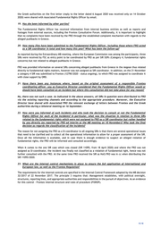 the Greek authorities on the first letter (reply to the letter dated 6 August 2020 was received only on 14 October 2020) were shared with Associated Fundamental Rights Officer by email. 19. Has she been informed by other parties? The Fundamental Rights Officer has received information from internal business entities as well as reports and footages from external sources, including the Frontex Consultative Forum. Additionally, it is important to highlight that no complaints have been received by the FRO through the established complaint mechanism with regards to the alleged pushbacks in Greece. 20. How many files have been submitted to the Fundamental Rights Officer, including those where FRO acted as a SIR coordinator in total and how many this year? What has been the follow-up? As reported during the Extraordinary MB meeting, where the European Commission was among the participants, three SIRs were received by FSC as entry point to be coordinated by FRO as per SIR SOPs (Category 4, fundamental rights concerns) but not related to alleged pushbacks in Greece. FRO was provided information on several SIRs concerning alleged pushbacks from Greece in the Aegean thus related directly to fundamental rights matters, however was not assigned as SIR coordinator. In addition, on the 21 November a category 4 SIR was submitted to Frontex (12790/2020 - status ongoing), to which FRO was assigned to coordinate it with close support by ORD. 21. Have there been any instances where, based on the original assessment of a responsible Frontex coordinating officer, you as Executive Director considered that the Fundamental Rights Officer would or should have been consulted on an incident but where this consultation did not take place for any reason? No, there was not such a case. As indicated in the above answers, all SIRs in question were distributed to FRO via the existing reporting channels and according to the appropriate procedure. Moreover, the Executive Director have shared with Associated FRO the relevant exchange of letters between Frontex and the Greek authorities during a bilateral meeting on 16 September. 22. How were you informed of such incidents and who took the decision to consult or not the Fundamental Rights Officer for each of the incidents? In particular, what was the situation in relation to three SIRs related to the fundamental rights which were not assigned to FRO as a SIR coordinator but rather handled by you directly (as reported by FRO ad interim at the MB meeting on 10 November)? Who took the final decision as regards the classification of the incidents? The reason for not assigning the FRO as a SI-coordinator to all ongoing SIRs is that there are several operational issues that need to be clarified and to collect all the operational information to allow for a proper assessment of the SIR. Once all the information is available, and in case there is enough evidence to suspect an alleged violation of fundamental rights, the FRO will be informed and consulted accordingly. When it comes to the one SIR case which was closed (SIR 11095, from 18 April 2020) and where the FRO was not assigned as SI-coordinator, the incident was finally not classified as a violation of fundamental right, hence was not further consulted with the FRO. At the same time FRO received the SIR as HoO.FRO was in cc when distributing the SIR 11095/2020. 23. What are the internal control mechanisms in place to ensure the full application of international and European law, as well as the Frontex Regulation? The requirements for the internal controls are specified in the Internal Control Framework adopted by the MB decision 32/2017 of 22 November 2017. The principle 3 requires that: Management establishes, with political oversight, structures, reporting lines, and appropriate authorities and responsibilities in the pursuit of objectives. As an evidence for this control - Frontex internal structure and rules of procedure (FISROP). 15/18