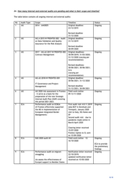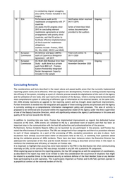 24. How many internal and external audits are pending and what is their scope and timeline? The table below contains all ongoing internal and external audits: No Audit Type Scope Timeline Status 1 IAS 2014 - A442825 Original deadline: Ongoing 23/12/2015 Revised deadline 31/12/2020 2 IAS IAS.A-2015-W FRONTEX-002 - Audit Original deadline: Ongoing on Data Validation and Quality 31/12/2019 Assurance for the Risk Analysis Revised deadline 30/09/2020 3 IAS 2017 - IAS.A2-2017-W FRONTEX-002 Original deadlines: Ongoing Contract Management 30/09/2019; 31/03/2020; 31/12/2020 (varying per recommendation) Revised deadlines: 30/06/2021; 30/06/2021; N/A (varying per recommendation) 4 IAS IAS.A2-2018-W FRONTEX-001 Original deadline: Ongoing 30/06/2021; 31/12/2020 IT Governance and Project Management Revised deadline 31/12/2021; 30/09/2021 6 IAS IAS 2020 risk assessment in Frontex Field work/online Ongoing - it serve as a basis for the 09-13/11/2020 preparation of the new Strategic Internal Audit Plan (SIAP) covering the period 2021-2023. 7 ECA Performance audit on ECBGA First audit visit 4-8.11.2019 Ongoing (if Frontex effectively supported (also BCP in Dorohusk and the MS in implementation of Terespol). January 2020 European Integrated Border visit to Italy, DG Home and Management) EP Second audit visit – due to pandemic made online in March/April 2020 Clearing letter received 15/07/2020 Frontex replies to CL sent on 15/09/2020 8 ECA DAS 2020 audit M1 Field work/online – 12- Ongoing 16/10/2020 ECA to provide the preliminary findings 9 ECA Performance audit on migrant Notification letter received Ongoing smuggling 22/10/2019; updated notification letter (to assess the effectiveness of received on 15/05/2020 Europol support to Member States 16/18