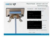 Masthead observation technology Standard – 360° 360 Observation • 4 x 3 megapixel day/night cameras • 360° view around the MBE - radius of 75m • Video analytic detects persons and cars • Alarm triggering is reported • Horizontal field – up to 100° • Observation head is expandable with a 360° illumination www.vimtec.e u