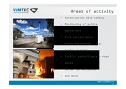 Areas of activity • Construction site safety • Monitoring of police operations • Fire surveillance • Event monitoring – e.g. public viewing • Traffic surveillance – road works • Border surveillance • and more www.vimtec.e u