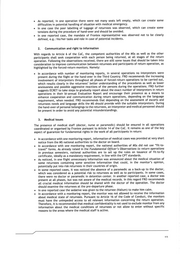 As reported, in one operation there were not many seats left empty, which can create some difficulties in potential handling of situation with medical emergency. In one case the poor labelling of luggage of returnees was observed, which can create some tensions during the procedure of hand-over and should be avoided. In one reported case, the mandate of Frontex representative was observed not to be clearly defined, e.g.: his/her tasks and role in case of potential incidents. 2. Communication and right to information With regards to Article 6 of the CoC, the competent authorities of the MSs as well as the other participants shall seek cooperation with each person being returned, at all stages of the return operation. Following the observations received, there are still some issues that should be taken into consideration to improve communication between returnees and participants of return operation, as highlighted by the forced-return monitors. Namely: In accordance with number of monitoring reports, in several operations no interpreters were present during the flight or the hand-over in the Third Country. FRO recommends the increasing involvement of interpreters throughout all phases of forced-return operations to be carried out, which results clearly in the returnees’ better understanding of the procedures as well as lower anxiousness and possible aggressive reactions of the persons during the operations. FRO further suggests ECRET to take steps to gradually report about the exact number of interpreters in return operations in their bi-annual Evaluation Report and encourage their presence as a means to enhance cooperation and communication during return operations, depending on the language requirement, when needed. FRO recommends that depending on the assessment of escorts and returnees needs and language skills the MS should provide with the suitable interpreters. During the hand-over of personal belongings to the returnees, an interpreter and medical personnel should be present in order to avoid any potential misunderstandings. 3. Medical issues The presence of medical staff (doctor, nurse or paramedic) should be ensured in all operations coordinated or organised by Frontex pursuant to Article 14 of the CoC. It remains as one of the key aspect of guarantee for fundamental rights in the work of all participants in return: In accordance with one monitoring report, information of medical cases was provided at very short notice from the MS national authorities to the doctor on board. In accordance with one monitoring report, the national authorities of MSs did not use “fit-to- travel” forms. As already raised in the Fundamental Officer’s Observations to return operations in previous semesters, national authorities are to set up the rules on issuance of fit-to-fly certificate, ideally as a mandatory requirement, in line with the CPT standards. As noticed, in one flight unnecessary information was announced about the medical situation of some returnees containing some sensitive information that could, in the monitor’s opinion, potentially put into risk returnees in their countries of origin. In some reported cases, it was noticed the absence of a paramedic as a back-up to the doctor, which was considered as a potential risk to returnees as well as to participants. In some cases, there were no doctor or paramedic in detention center. In another reported case, a doctor was present at all phases, but was not aware of the medical records. In this regard FRO recommends all crucial medical information should be shared with the doctor of the operation. The doctor should examine the returnees at the pre-departure phase. In one reported case the sedative was given to the returnee (Valium) to make him calm. In accordance with a monitoring report, the monitor was not allowed to receive the information about medical state of returnees. Pursuant to Article 16 of the Code of Conduct, the monitors must have the unimpeded access to all relevant information concerning the return operation. Therefore, it is recommended that medical confidentiality is not used to exclude monitor from any information about the medical conditions of returnees or not allow to enter without specific reasons to the areas where the medical staff is active. 41/6