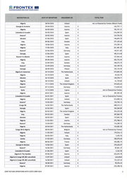 =::: FRONTEX IB EUROPEAN BORDER AND COAST GUARD AGENCY DESTINATION (S) DATE OF DEPARTURE ORGANISING MS TOTAL PAID Nigeria 17/10/2012 The Netherlands € 165 ,726.08 Colombia & Ecuador 18/10/2012 Spain not co·financed by Frontex Pakistan 25 / 10/2012 Spain € 408, 154.71 Serbia 08/1112012 Germany € 72,576.42 Kosovo* 13 / 11/2012 Germany € 123 ,254.57 Serbia 05/12/2012 Sweden € 152,042.87 Nigeria 05/1212012 Austria € 395,471.06 Georgia & Armenia 12112/2012 Austria € 197,133.94 Nigeria 24/01/2013 The United Kingdom € 40,829.47 Nigeria 30/01/2013 Austria € 306,961 .62 Colombia & Ecuador 30/01/2013 Spain € 317,954.17 Nigeria 07/02/2013 Italy € 202, 328.97 Georgia & Ukraine 13/02/2013 Spain € 249,532.22 Nigeria 14/0212013 Norway € 269, 132. 50 Georgia 26/02/2013 Austria € 91 , 143.44 fYROM & Serbia 05/03/2013 Germany € 161,551.60 Colombia & Dominican Republic 20/03/2013 Spain € 9,344.05 Nigeria 11/0412013 Austria € 332 ,171.05 Serbia 23/04/2013 Germany € 128,262.11 Pakistan 24/04/2013 Spain € 497,552.92 Nigeria 24/04/2013 The Netherlands € 171 ,959.35 Kosovo• 07/05/2013 Germany € 112,447.71 Albania 16/05/2013 Ireland € 128,802.40 Armenia & Georgia 28/05/2013 Austria € 193,897.17 Nigeria 06/06/2013 Austria € 389,842.92 Congo DR 16/06/2013 Belgium € 41,638.47 fYROM & Serbia 18/06/2013 Germany € 100,462.44 Colombia & Ecuador 19/0612013 Spain not co·financed by Frontex Nigeria 20/06/2013 Italy € 194, 135.22 Serbia 09/07/2013 Germany € 109,204. 52 Nigeria 22/08/2013 Spain € 258,853.17 Nigeria 19/0912013 Italy € 271,904.95 fYROM & Serbia 24/09/2013 Germany € 120,525.99 Kosovo* 08/10/2013 Sweden € 153,125. 53 Colombia & Ecuador 08/10/2013 Spain € 316,497.20 Nigeria 17/10/2013 The Netherlands € 171,911 .75 Albania 29/10/2013 France € 174,058.93 Serbia 19/11/2013 Germany € 75,949.99 Nigeria 21 / 11 / 2013 Austria € 302,547.97 Pakistan 22/11/2013 Spain € 480,336.46 Nigeria 28/11/2013 Italy € 204, 192.90 Georgia & Ukraine 29/11/2013 Spain € 257,909.81 Congo DR 04/12/2013 Belgium € 6,025.11 Colombia & Ecuador 11/1212013 Spain € 287,051.92 Albania 12/1212013 Iceland € 108,877.96 Nigeria 16/01/2014 Italy € 2, 331 .37 Pakistan 19/01/2014 Greece € 55,950.04 fYROM 21/01/2014 Germany € 64,629 . 12 JOINT RETURN OPERATIONS WITH COSTS 2009-2014 4