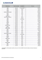 === FRONTEX Bl EUROPEAN BORDER AND COAST CUARD AGENCY DESTINATION (S) DATE OF DEPARTURE ORGANISING MS TOTAL PAID Nigeria 25/0212009 Ireland not eo-financed by Frontex Colombia & Ecuador 25/0212009 Spain First flight eo-financed by EC (70%) Preparatory Action 2007 Nigeria 12103/2009 Italy € 238,466.48 Nigeria 17/03/2009 Austria € 201,756.19 Georgia 27/03/2009 Austria € 52,115.00 Mongolia 01/04/2009 Sweden € 172,360.77 Nigeria & Cameroon 08/04/2009 The Netherlands € 384,967.64 Kosovo* & Albania 16/04/2009 France € 181 ,606.42 Cote d"lvoire & Toga 21/04/2009 Switzerland not eo-financed by Frontex Nigeria 29/04/2009 Ireland € 296,930.93 Kosovo• & Albania 15/05/2009 Austria € 75,416.85 Nigeria 21/05/2009 Italy € 171,091.38 Nigeria 28/05/2009 Switzerland not eo-financed by Frontex Nigeria 02/06/2009 Austria € 307,507.20 Vietnam 08/06/2009 Germany € 378,307.24 Georgia & Armenia 24/06/2009 Austria € 224,007.68 Nigeria 30/0612009 The United Kingdom not eo-financed by Frontex Nigeria 15/07/2009 The Netherlands Second flight eo-financed by EC (70%) Preparatory Action 2007 Georgia & Armenia 12108/2009 Austria € 83,191.88 Nigeria 01/09/2009 Austria € 383,934.08 Kosovo* & Albania 08/09/2009 Austria € 117,200.49 Colombia & Ecuador 16/09/2009 Spain Third flight eo-financed by EC (70%) Preparatory Action 2007 Nigeria 25/09/2009 Italy not eo-financed by Frontex (Return Fund) Georgia 30/09/2009 Switzerland not eo-financed by Frontex Nigeria & The Gambia 06/10/2009 Austria € 131 ,932.60 Nigeria 21/10/2009 Ireland not eo-financed by Frontex (Return Fund) Mongolia 03/11/2009 Sweden € 196,787.90 Nigeria 13/11/2009 Italy € 266,018.07 Nigeria 01/12/2009 Austria € 107,769.87 Georgia 09/1212009 France € 272,623.78 Kosovo* & Albania 15/1212009 Austria € 95, 223.72 Nigeria 16/1212009 Ireland not eo-financed by Frontex (Return Fund) Kosovo* & Albania 14/01 / 2010 Austria € 147,992.25 Nigeria 21/01/2010 Austria € 380,461.07 Colombia & Ecuador 27/01/2010 Spain € 489 ,131 .52 Burundi 0210212010 Sweden € 271,396.17 Nigeria 03/02/2010 The United Kingdom € 382,700.13 Kosovo* & Albania 16/0212010 Austria € 76,680.73 Georgia 17/0212010 Spain € 274, 171.35 Iraq 24/02/2010 Sweden € 174,665.68 Nigeria & The Gambia 03/03/2010 Austria € 360,545. 77 Nigeria 10/03/2010 France € 326,964.30 Kosovo* & Albania 16/03/2010 Austria € 76,538.36 Nigeria 18/03/2010 Italy € 295,855.62 Georgia & Armenia 30/03/2010 Austria € 168,551.47 Georgia 13/04/2010 Germany € 86,294.92 Kosovo* 14/04/2010 Finland € 143, 745.59 Nigeria & Cameroon 28/04/2010 The Netherlands € 246,577.51 JOINT RETURN OPERATIONS WITH COSTS 2009-2014