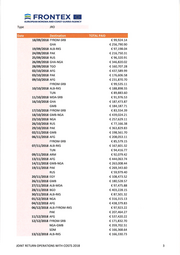 =Z FRONTEX EUROPEAN BORDER AND COAST GUARD AGENCY Type JRO Date Destination 18/09/2018 FYROM-SRB GHA 19/09/2018 ALB-RKS 24/09/2018 PAK 25/09/2018 RUS 26/09/2018 GHA-NGA 28/09/2018 TGO 02/10/2018 AFG 03/10/2018 PAK 09/10/2018 AFG FYROM-SRB 10/10/2018 ALB-RKS TUN 11/10/2018 MDA-SRB 16/10/2018 GHA GMB 17/10/2018 FYROM-SRB 18/10/2018 GMB-NGA 23/10/2018 NGA 26/10/2018 RUS 29/10/2018 PAK 02/11/2018 GMB 06/11/2018 AFG FYROM-SRB 07/11/2018 ALB-RKS TUN 09/11/2018 ARM 13/11/2018 AFG 14/11/2018 GMB-NGA 19/11/2018 PAK RUS 20/11/2018 EGY 26/11/2018 GMB 27/11/2018 ALB-MDA 28/11/2018 BGD 30/11/2018 ALB-RKS 01/12/2018 NGA 04/12/2018 AFG 06/12/2018 ALB-FYROM-RKS PAK 11/12/2018 AFG 12/12/2018 FYROM-SRB NGA-GMB SOM 13/12/2018 ALB-RKS JOINT RETURN OPERATIONS WITH COSTS 2018 TOTAL PAID € 99,924.14 € 256,790.90 € 97,198.04 € 216,750.31 € 96,320.91 € 346,820.02 € 160,707.28 € 437,589.99 € 176,606.58 € 231,870.70 € 99,535.11 € 188,898.55 € 89,883.60 € 91,976.53 € 187,473.87 € 184,187.71 € 83,554.39 € 439,024.21 € 257,629.11 € 77,166.38 € 363,829.83 € 198,561.70 € 208,053.11 € 85,579.15 € 167,601.32 € 94,416.77 € 92,079.42 € 444,063.74 € 263,008.44 € 269,343.60 € 59,979.40 € 108,473.52 € 180,528.57 € 97,475.88 € 403,228.15 € 87,501.32 € 316,315.13 € 438,379.83 € 97,923.22 € 207,464.27 € 537,420.22 € 171,832.70 € 359,702.51 € 166,368.64 € 166,330.73